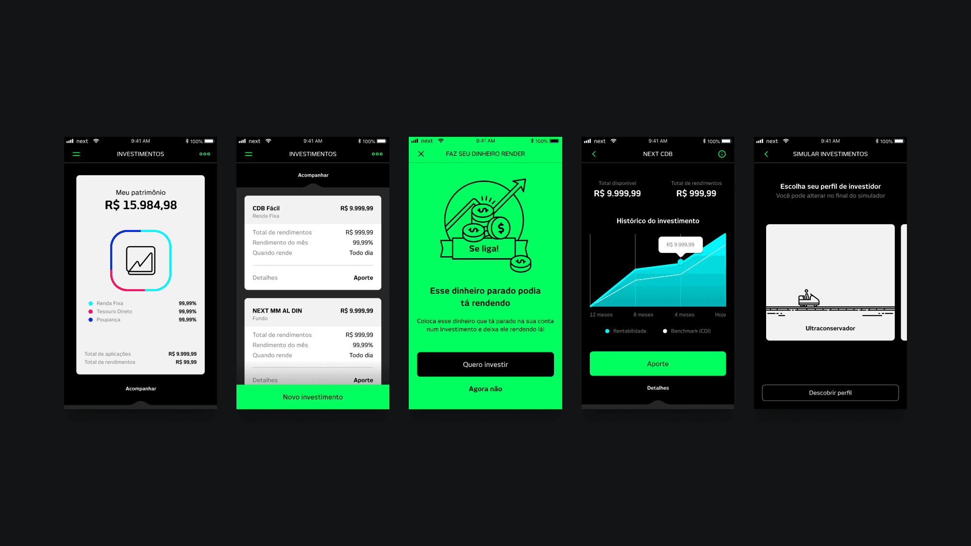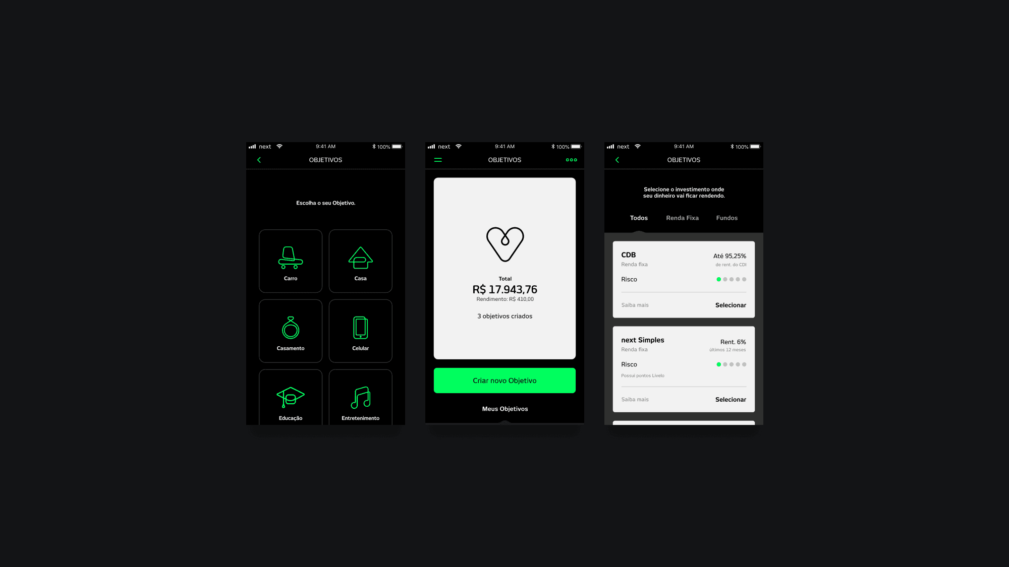 Collaborating with product, design, and tech teams to help deliver a clear, user-friendly interface for setting and tracking financial goals; Supporting the structuring of the investment section with simplified language and visuals, making complex financial concepts easier to understand; Assisting in the creation of flows and microinteractions that guided users through goal setting, progress tracking, and investment options; Ensuring consistency with the Next brand identity while promoting financial education and customer empowerment within the app.