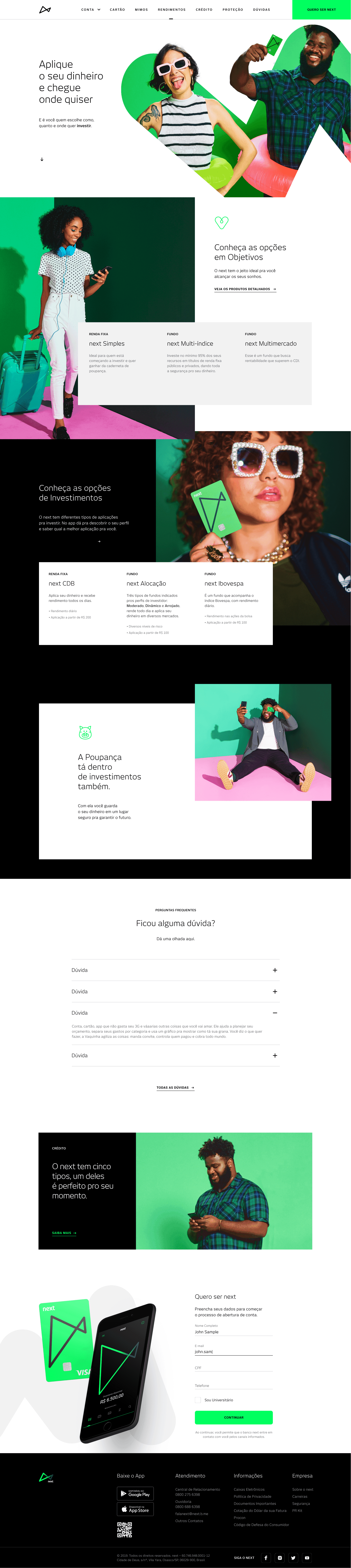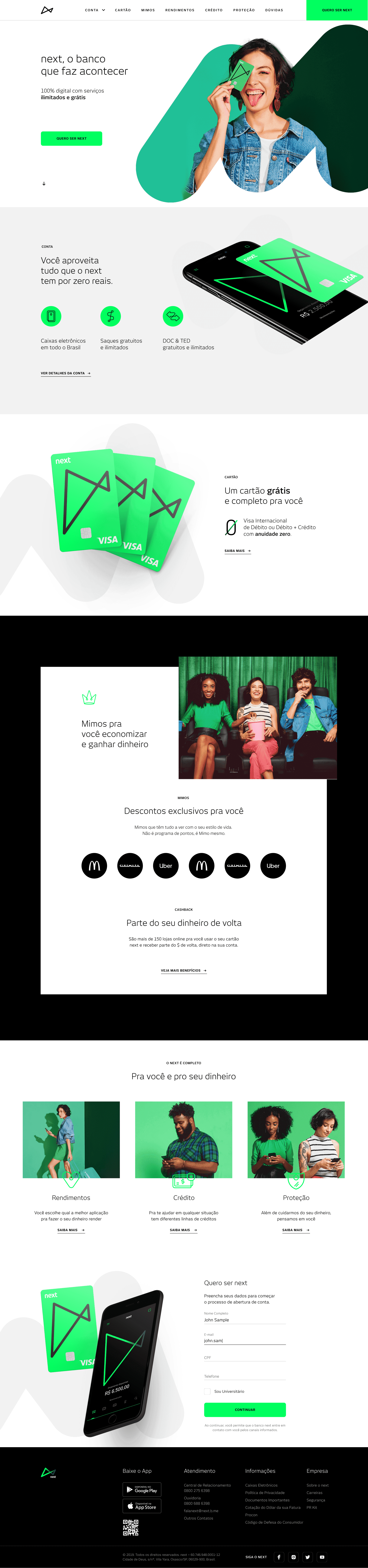 I participated in the development of the official website for Next, Bradesco’s digital-native bank focused on younger audiences and innovative financial experiences. The website was a key channel for brand communication, product presentation, and customer acquisition, with a strong focus on visual identity, responsiveness, and performance.